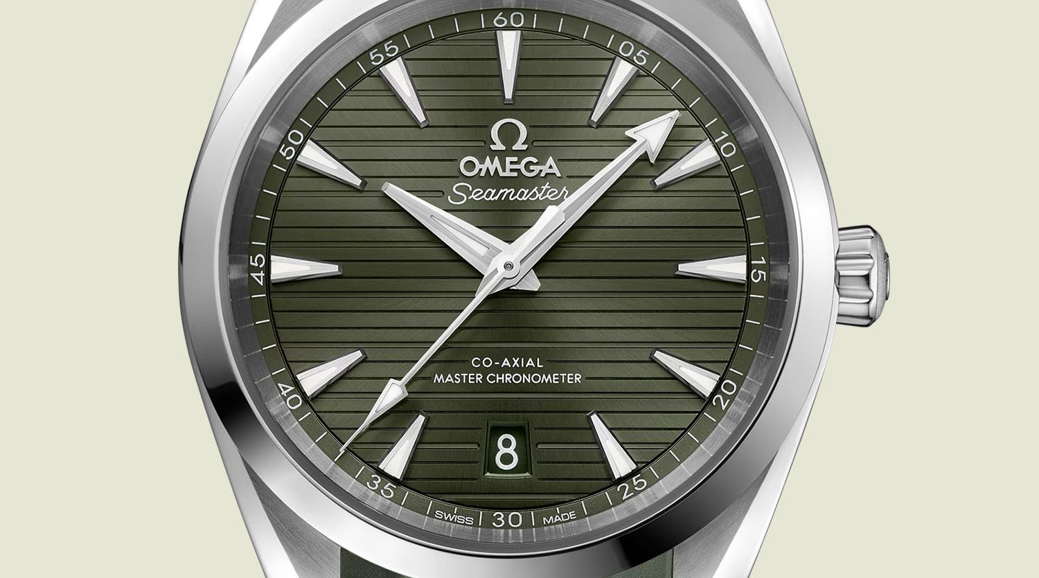 Per il resto, nessuna sorpresa. Tutte le specifiche sono identiche a quelle degli altri colori dell’Aqua Terra 38 mm, con uno spessore di 12 mm, una lunghezza di 45 mm e una cassa in acciaio inossidabile dotata di vetro zaffiro, corona a vite e impermeabilità di 150 metri. All’interno della cassa, visibile sotto il fondello in zaffiro, si trova il calibro automatico Master Chronometer 8800, con frequenza di 3,5 Hz, riserva di carica di 55 ore, scappamento coassiale e forte resistenza al magnetismo.